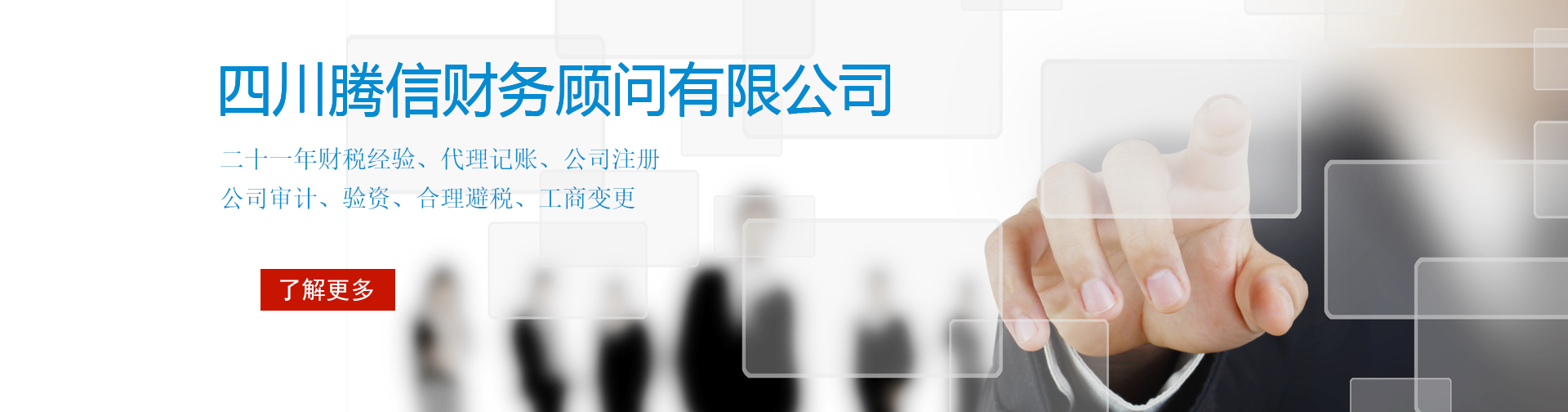 四川騰信財務顧問有限公司創建于2003年,創始人注冊會計師張力先生(譯為Tension),公司以其英文名的諧音而命名。“騰信“也是公司的服務宗旨:“以我們的誠信經營助您事業騰飛”的縮寫2003年公司創建之初,一直致力于成都兼職會計,成都代理記賬 ,成都工商注冊,成都工商代理,成都新公司注冊,成都財稅咨詢,成都稅務報到,成都代理做賬報稅。